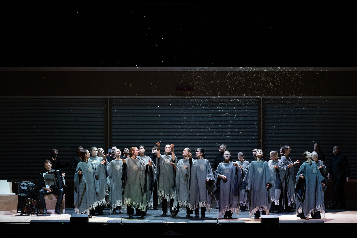 In AscheMOND oszillieren verschiedene Zeit- und Ausdrucksebenen: Stille, Visualität und Klang treten zueinander in Beziehung. Dabei umkreisen die durch Oehring modern übermalten Purcellschen Barocksongs und seine eigene vielgestaltige Musik einander wie Planeten. Die gehörlose Schauspielerin und Tänzerin Kassandra Wedel verkörpert die Fairy Queen in einer durch den Komponisten choreografierten Gebärdenpoesie, die nicht nur ihre, sondern auch die Partien der Sänger*innen und des Chores prägt.